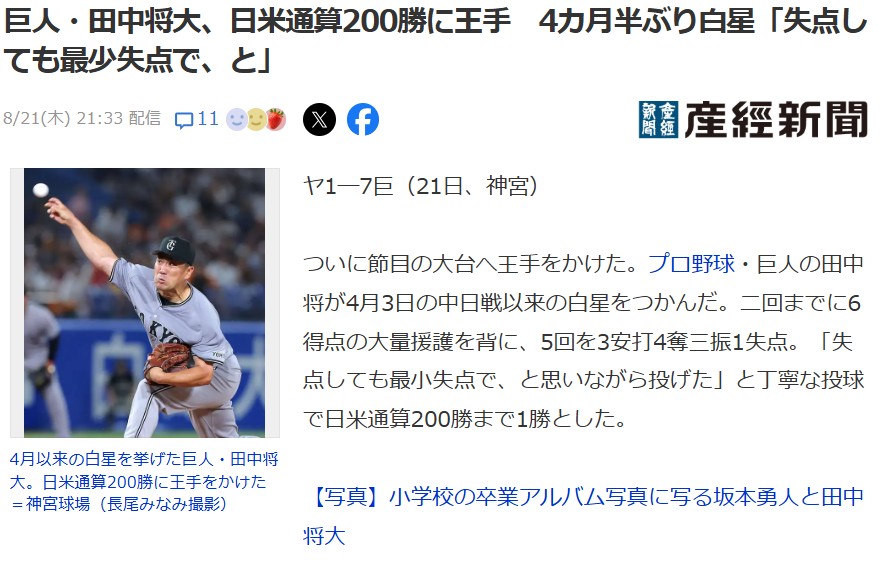 199勝目をあげたようですね!