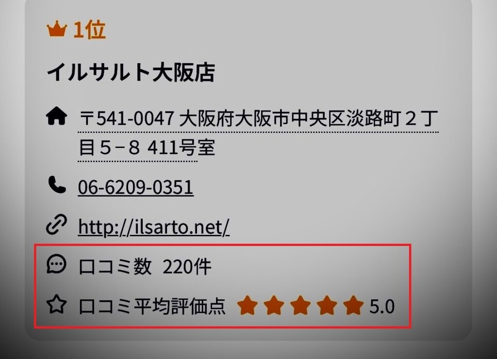 大阪口コミランキングで