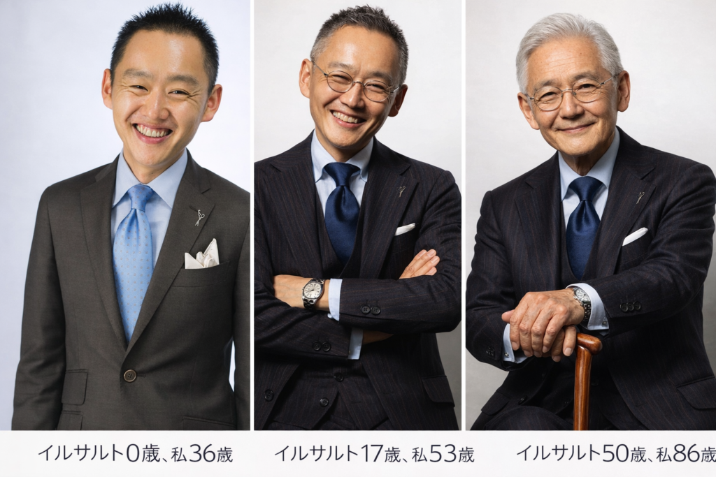 イルサルト50歳,私86歳(AI作成)