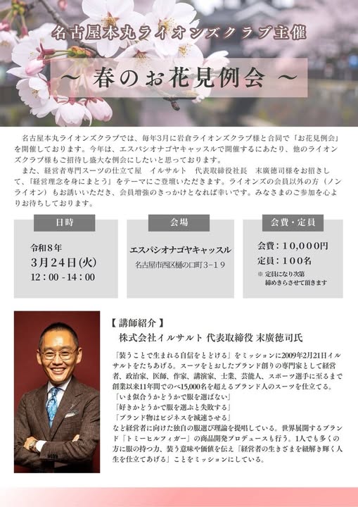 名古屋本丸ライオンズクラブ様にて講演決定!